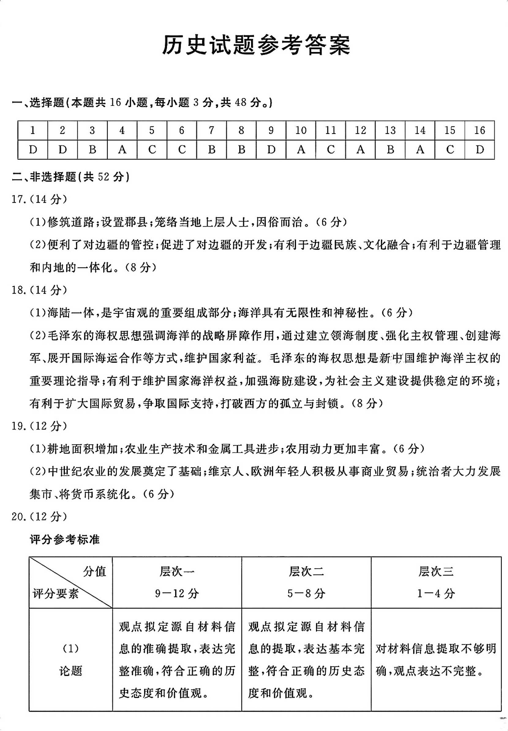 四川省九市2024-2025学年高三上学期(12月)第一次诊断性考试 历史答案.pdf