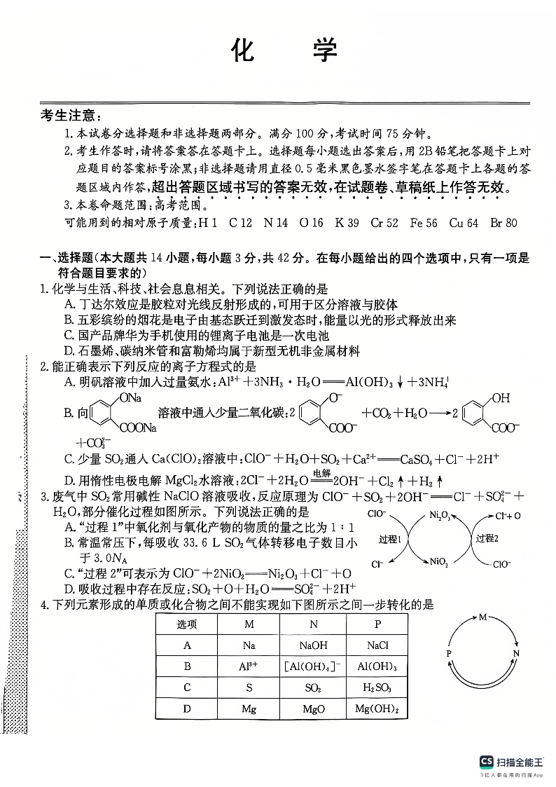安徽省皖南八校2025届高三第二次大联考 化学.pdf