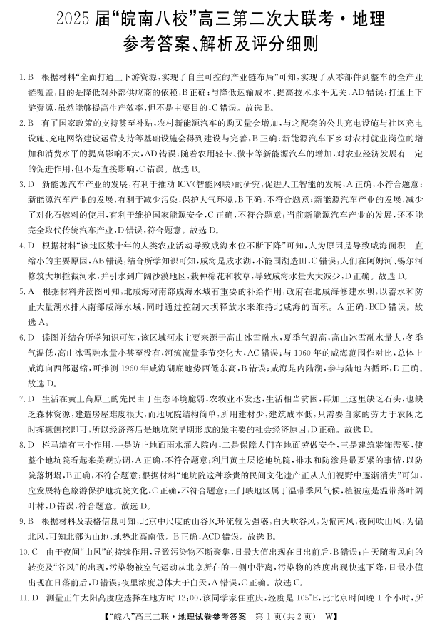 安徽省皖南八校2025届高三第二次大联考 地理答案.pdf