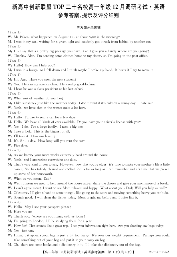 27 届高一年级 TOP二十名校12月调研考试英语答案.pdf