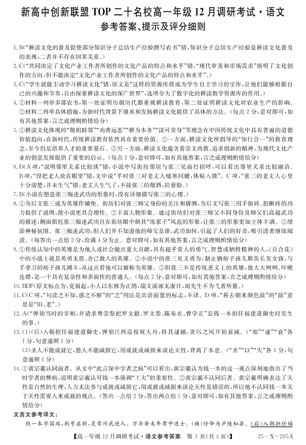 27 届高一年级 TOP二十名校12月调研考试语文答案.pdf