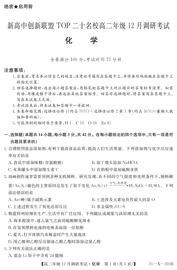 26 届高二年级 TOP二十名校12月调研考试化学试卷.pdf