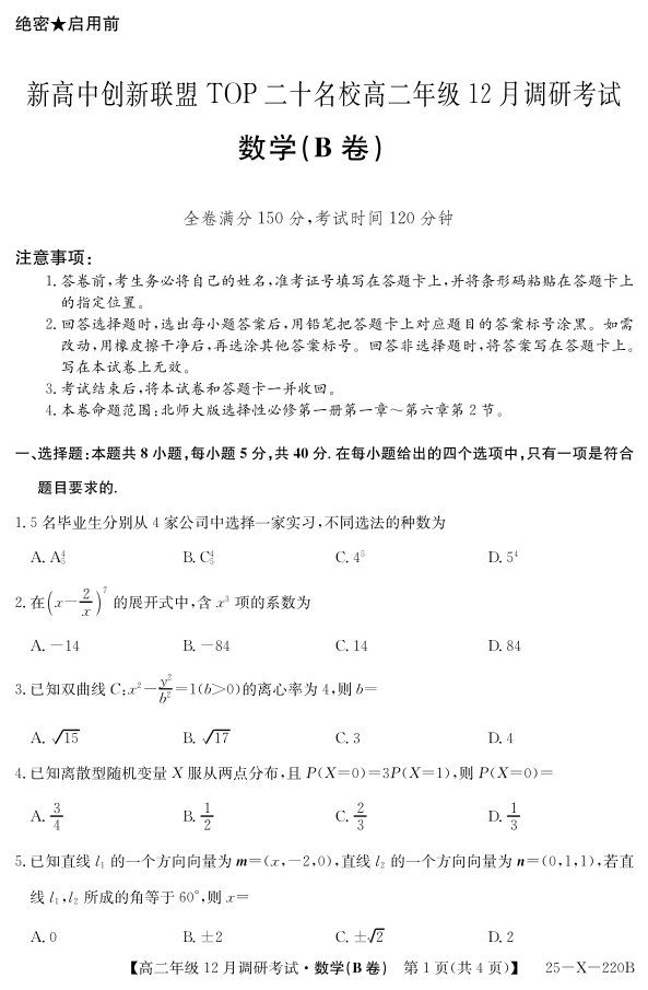 26 届高二年级 TOP二十名校12月调研考试数学(北师大)试卷.pdf