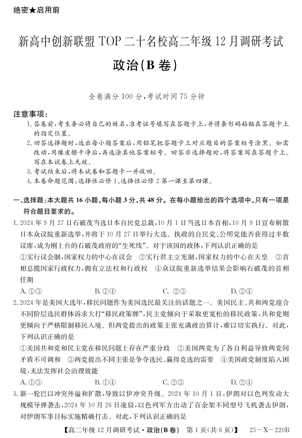 26 届高二年级 TOP二十名校12月调研考试政治(B卷) 试卷.pdf
