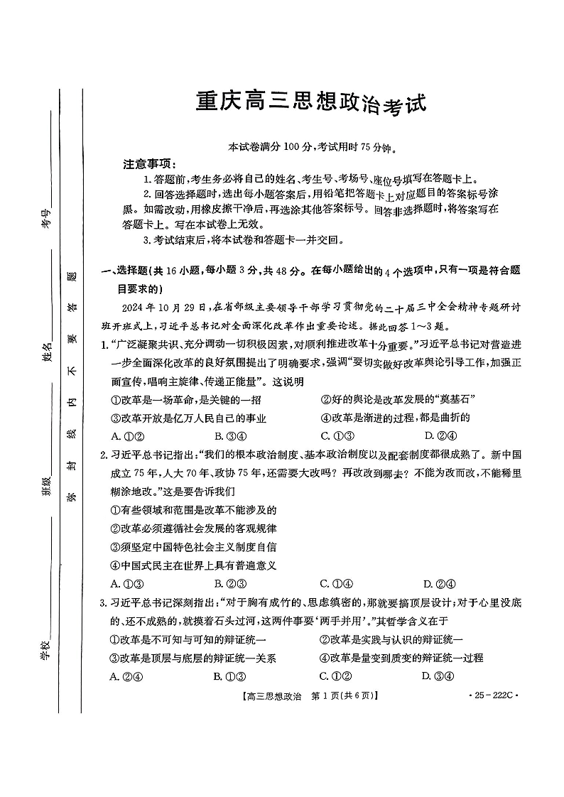 重庆市2025届高三好教育联盟12月联考 政治.pdf