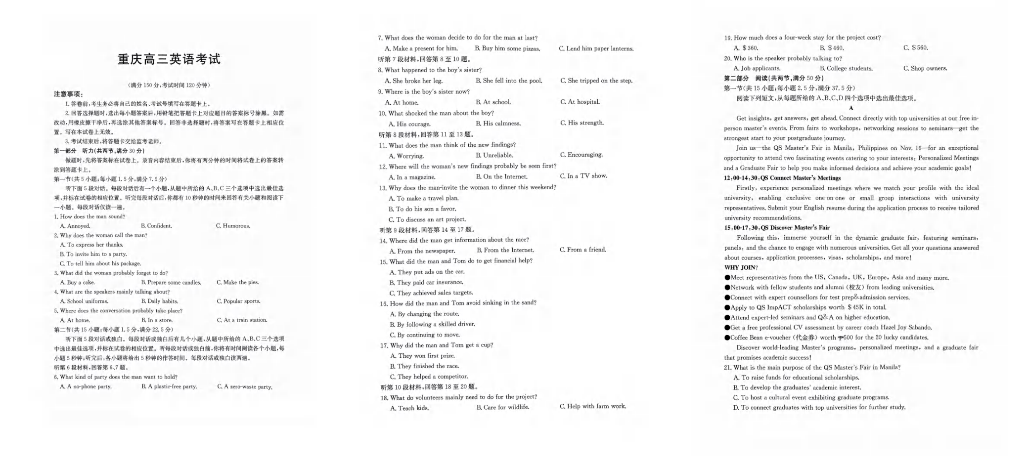 重庆市2025届高三好教育联盟12月联考 英语.pdf