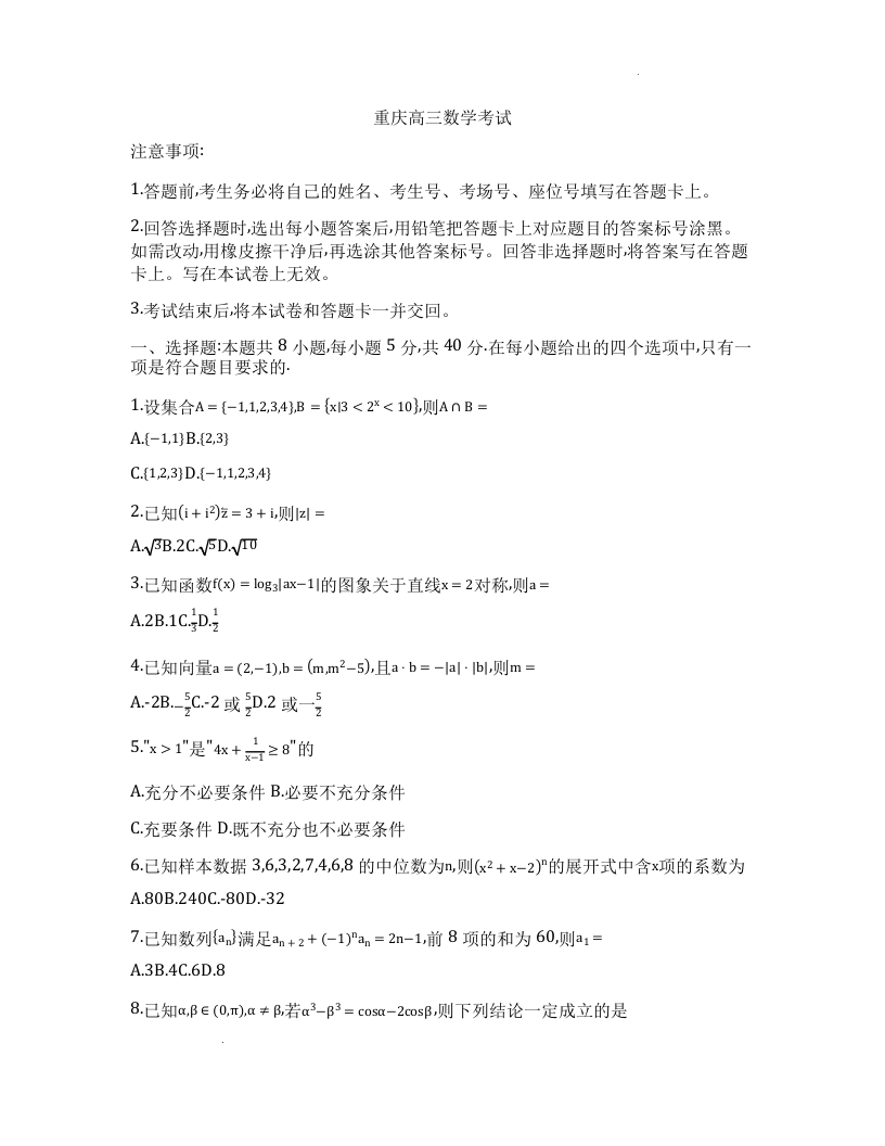 重庆市2025届高三好教育联盟12月联考 数学.docx