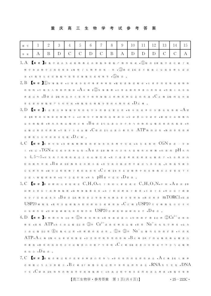 重庆市2025届高三好教育联盟12月联考 生物答案.pdf