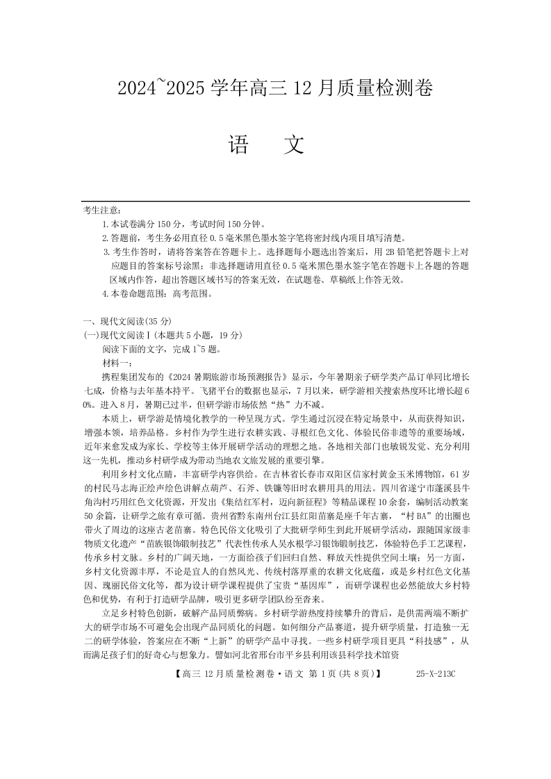 山西省卓越联盟2025届高三12月质量检测 语文.docx