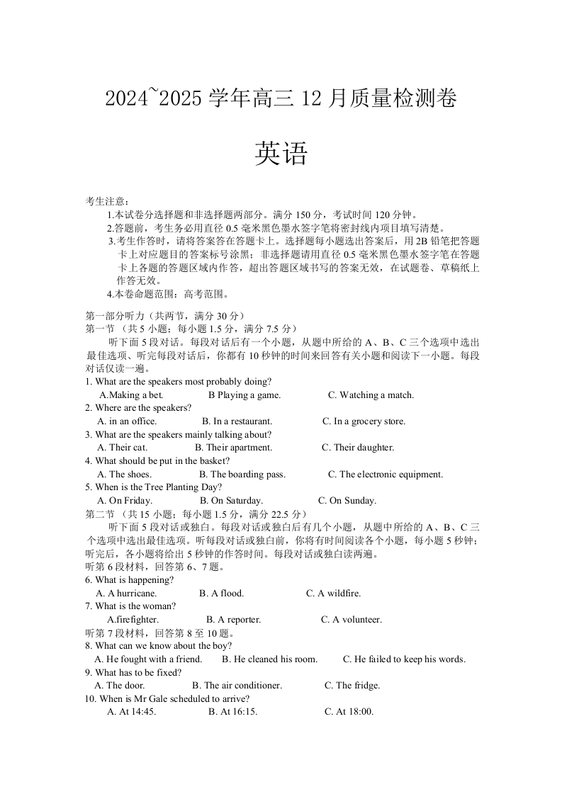 山西省卓越联盟2025届高三12月质量检测 英语.docx