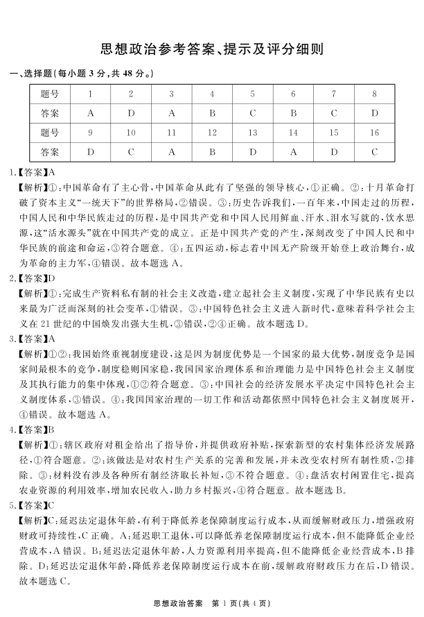 安徽师范大学附属中学2025届高三12月模拟考试 政治答案.pdf