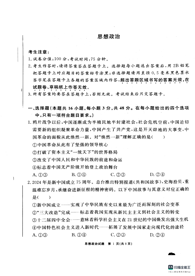 安徽师范大学附属中学2025届高三12月模拟考试 政治.pdf