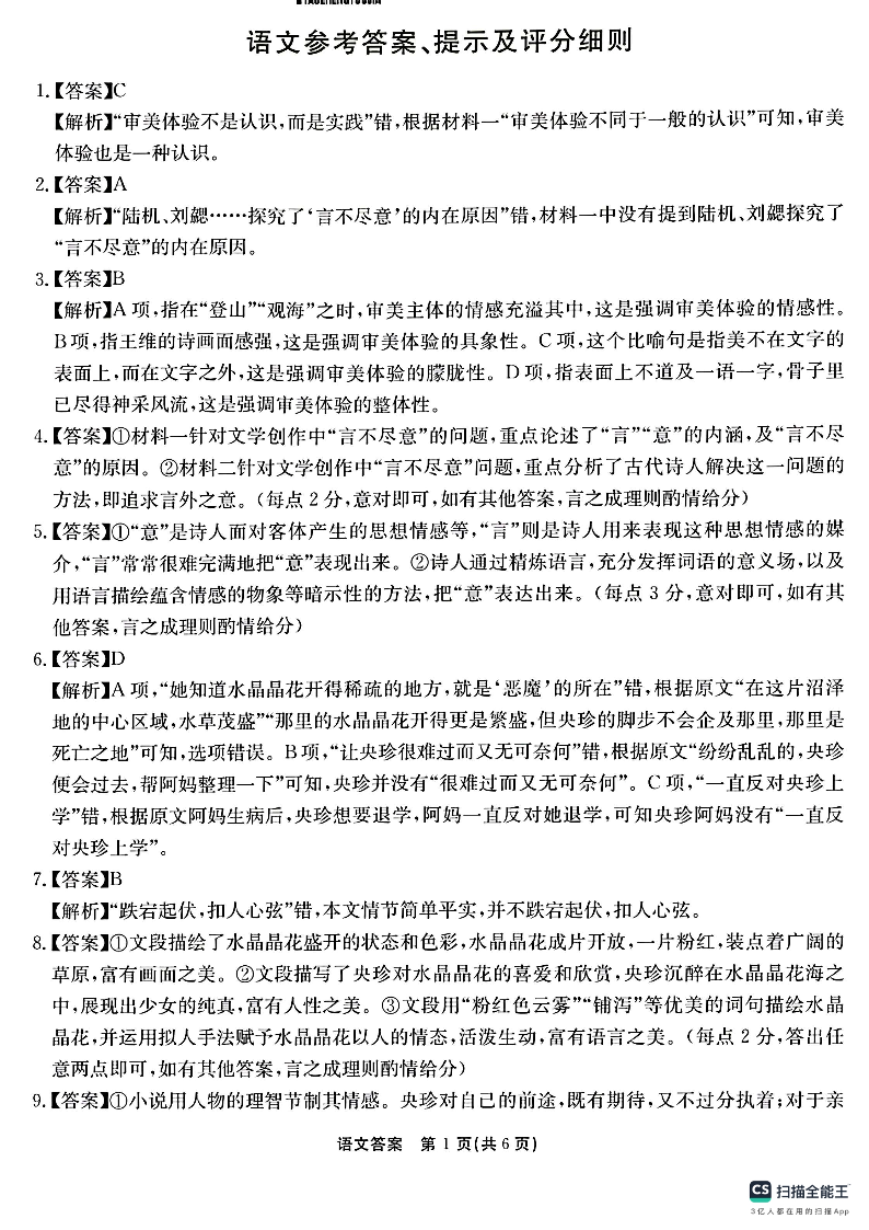 安徽师范大学附属中学2025届高三12月模拟考试 语文答案.pdf