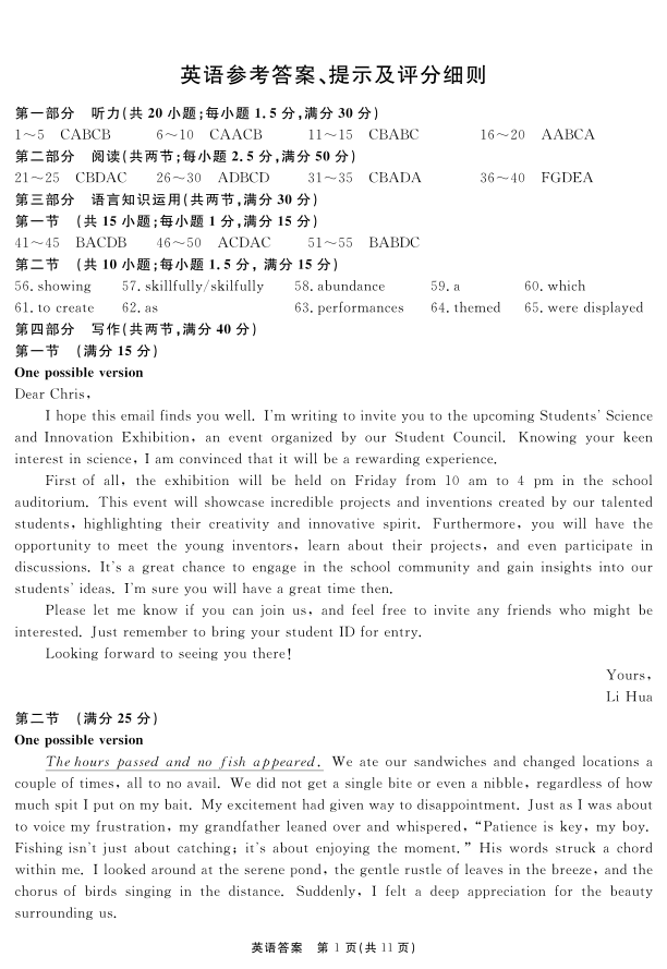 安徽师范大学附属中学2025届高三12月模拟考试 英语答案.pdf