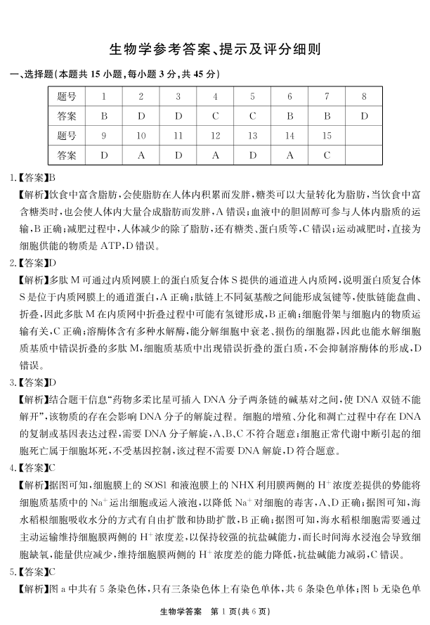 安徽师范大学附属中学2025届高三12月模拟考试 生物答案.pdf