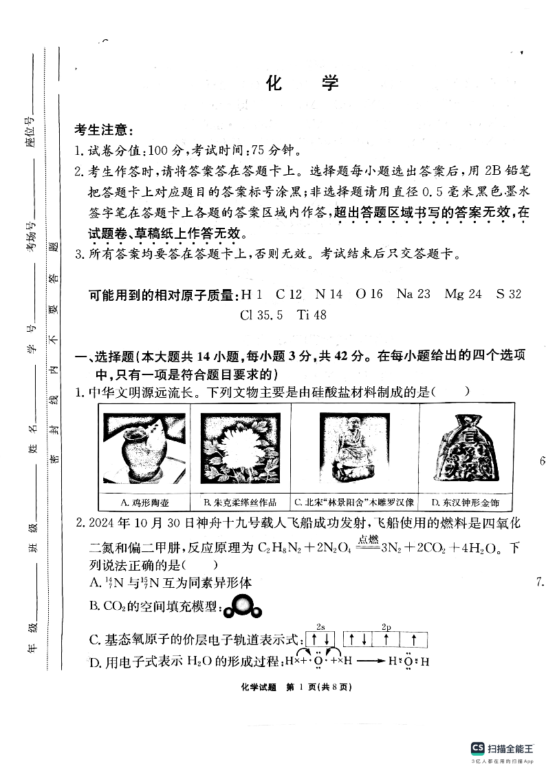 安徽师范大学附属中学2025届高三12月模拟考试 化学.pdf