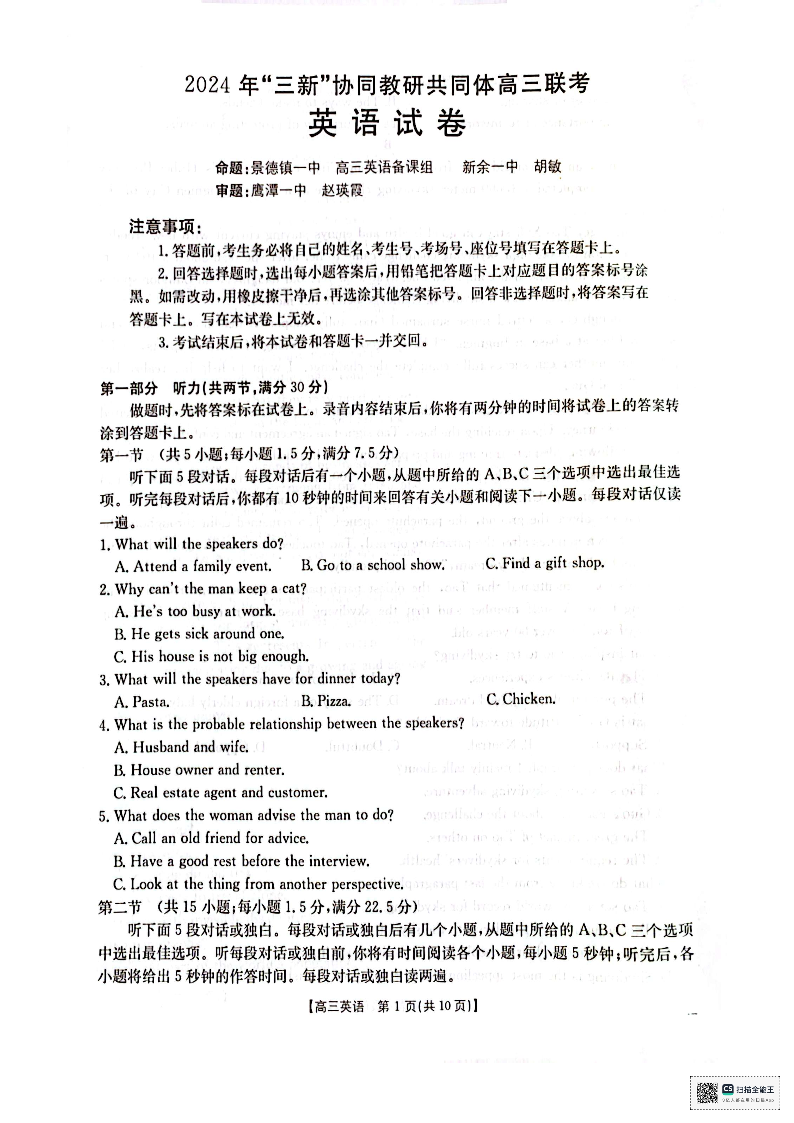 江西省“三新”协同教研共同体2025届高三上学期12月联考 英语.pdf