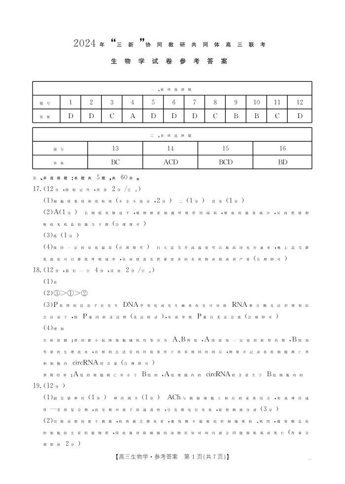江西省“三新”协同教研共同体2025届高三上学期12月联考 生物答案.pdf