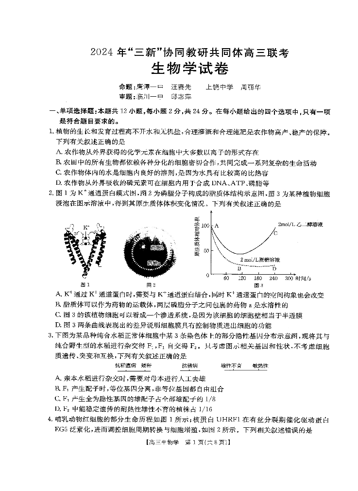 江西省“三新”协同教研共同体2025届高三上学期12月联考 生物.pdf