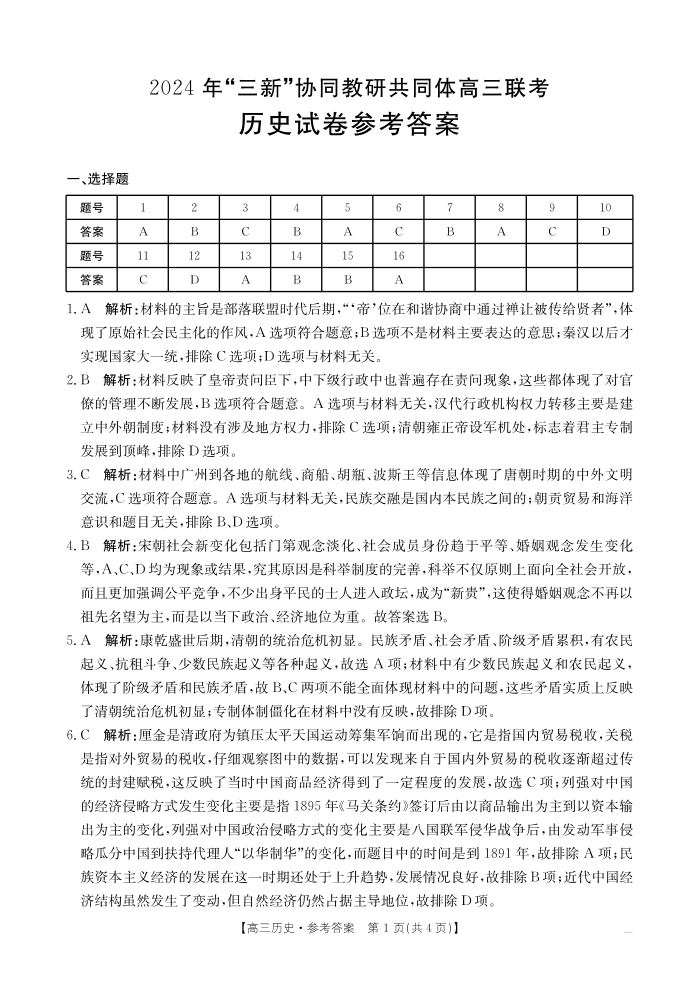江西省“三新”协同教研共同体2025届高三上学期12月联考 历史答案.pdf