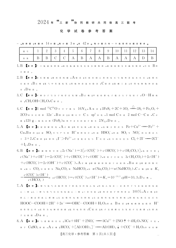 江西省“三新”协同教研共同体2025届高三上学期12月联考 化学答案.pdf
