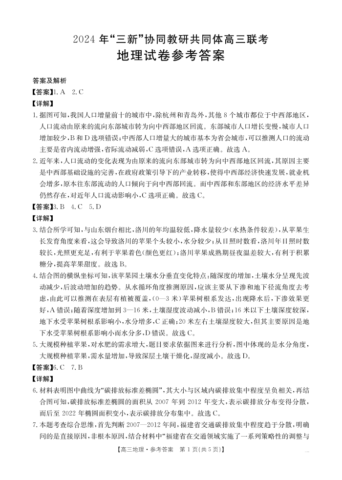 江西省“三新”协同教研共同体2025届高三上学期12月联考 地理答案.pdf