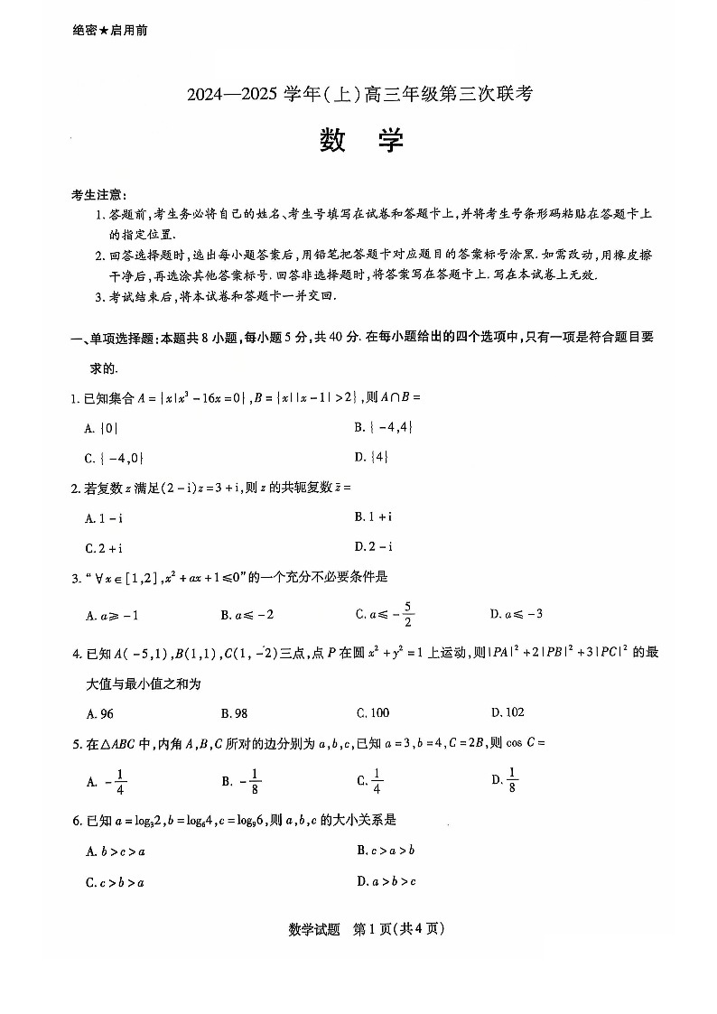 山东省齐鲁名校联盟大联考2024-2025学年高三上学期12月月考 数学.pdf