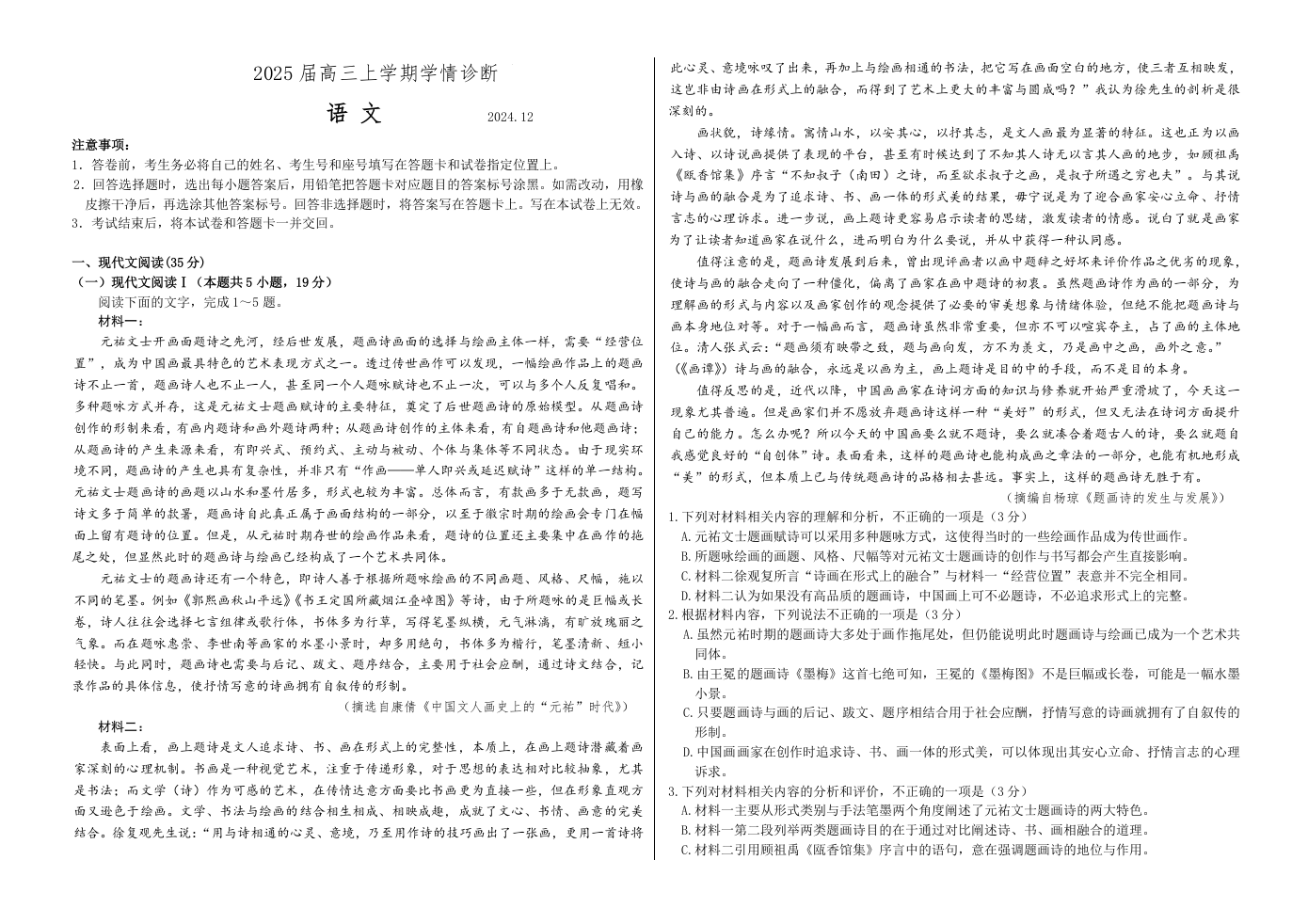 山东省百校大联考2025届高三上学期12月学情诊断 语文.docx