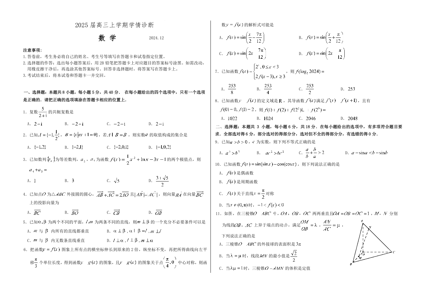山东省百校大联考2025届高三上学期12月学情诊断 数学.docx