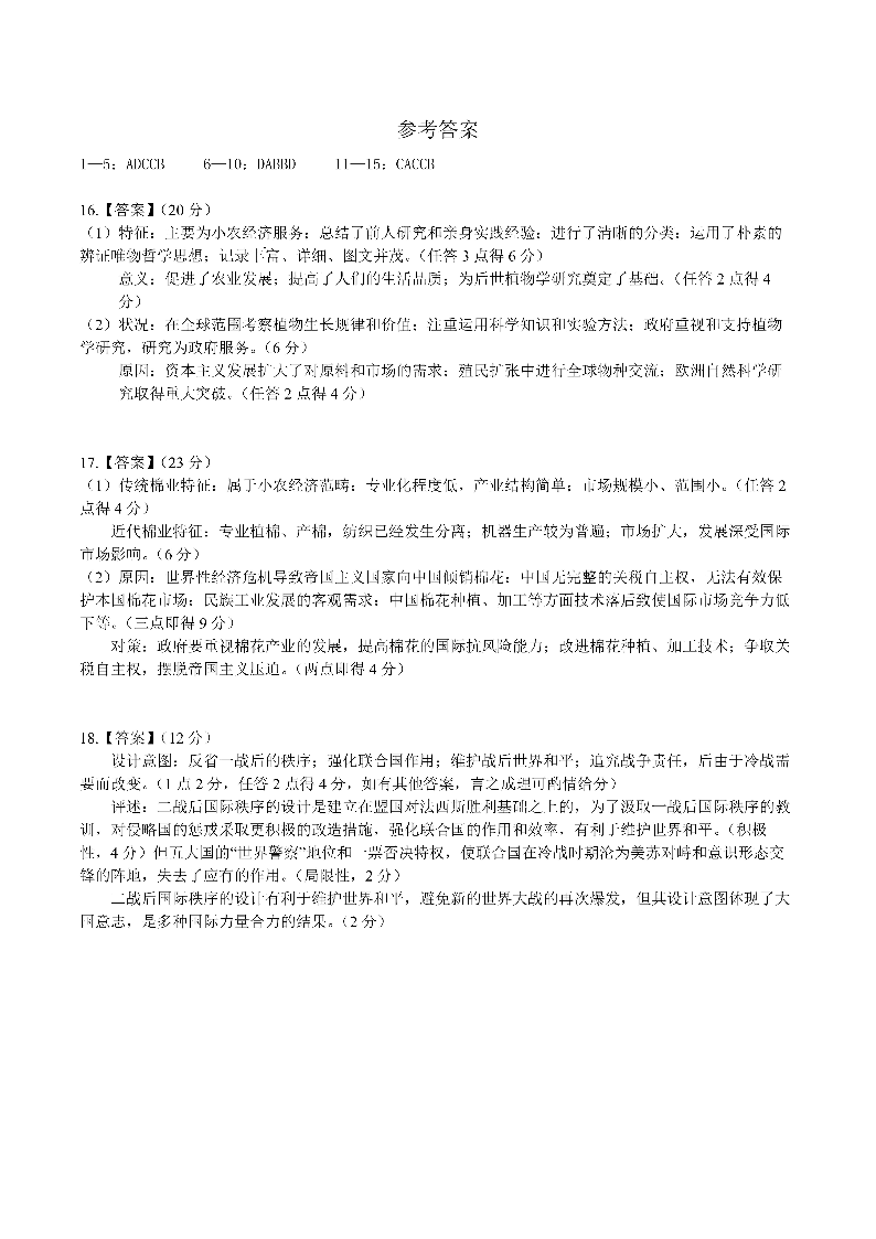 四川省成都市第七中学2025届高三上学期12月阶段性考试 历史答案.pdf