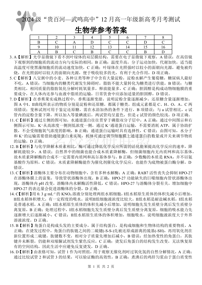 2024 级“贵百河—武鸣高中”12 月高一年级新高考月考测试 生物答案.pdf