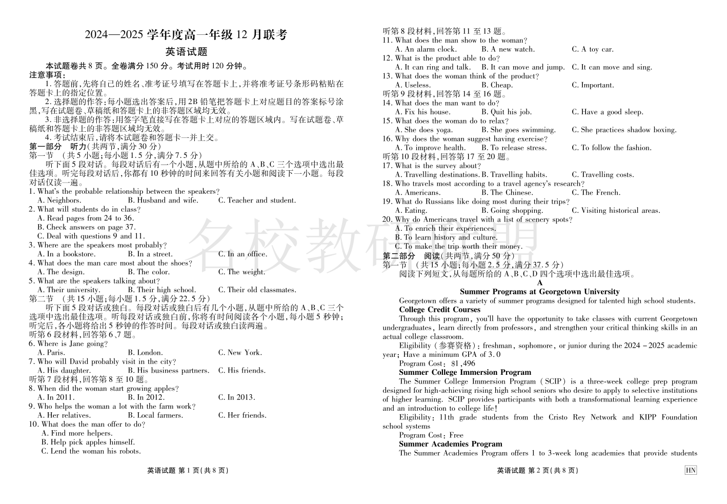 衡水金卷·2024-2025学年度高一年级12月联考 英语.pdf