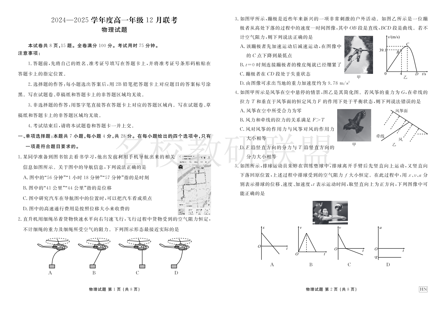 衡水金卷·2024-2025学年度高一年级12月联考 物理.pdf