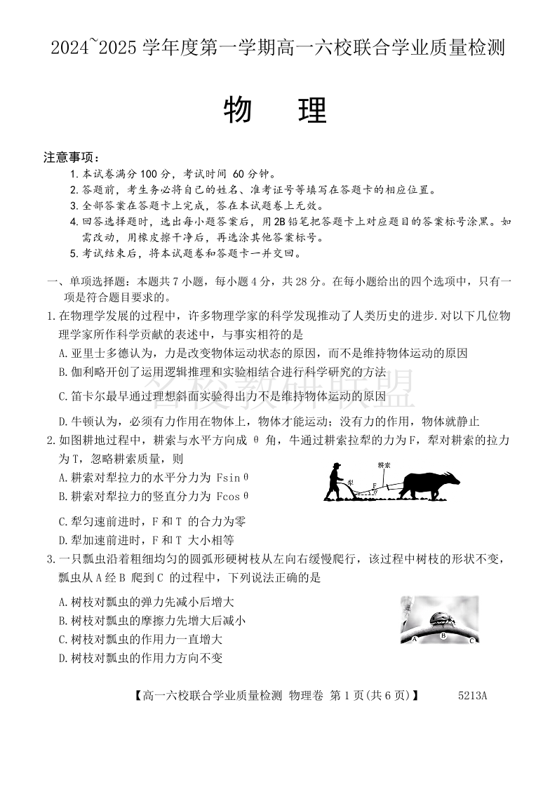 广东省2024~2025 学年度第一学期高一六校12月联合学业质量检测 物理.pdf