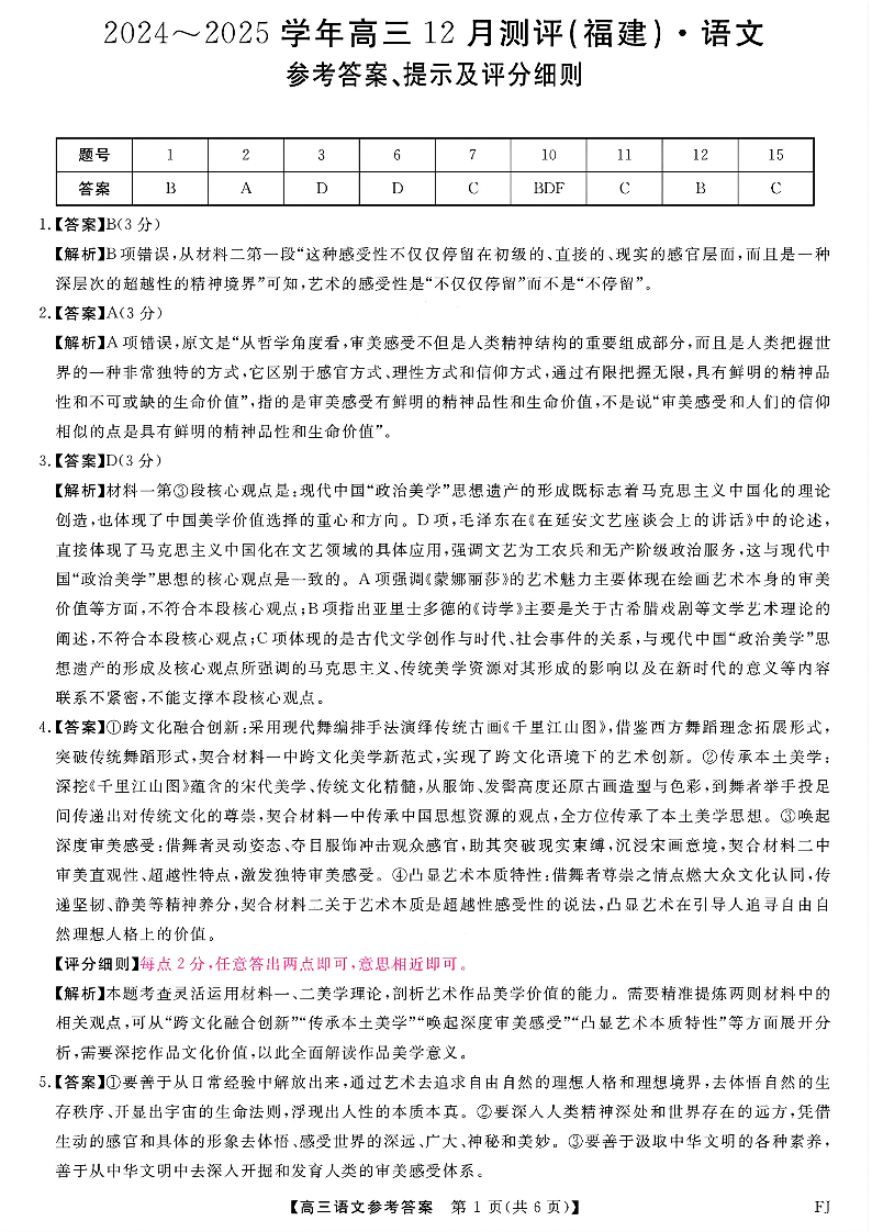 福建省金科大联考2024-2025学年高三12月测评 语文答案.pdf