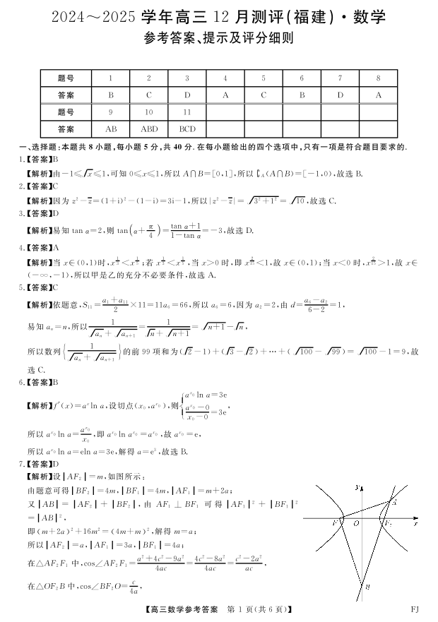 福建省金科大联考2024-2025学年高三12月测评 数学答案.pdf