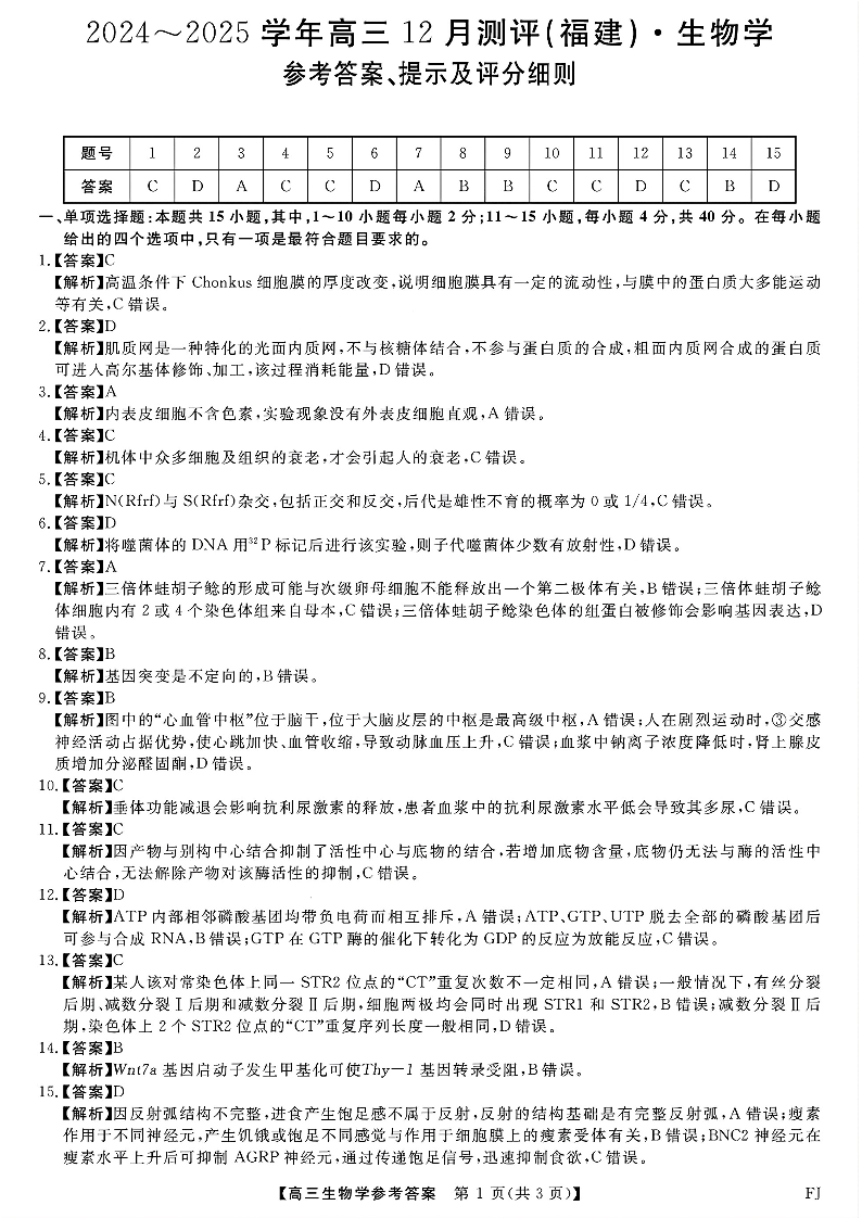 福建省金科大联考2024-2025学年高三12月测评 生物答案.pdf