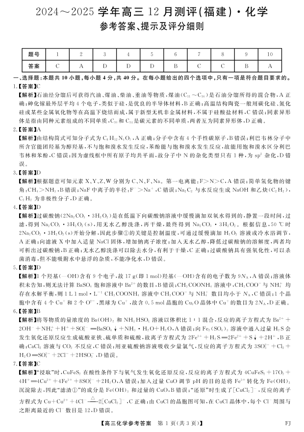 福建省金科大联考2024-2025学年高三12月测评 化学答案.pdf