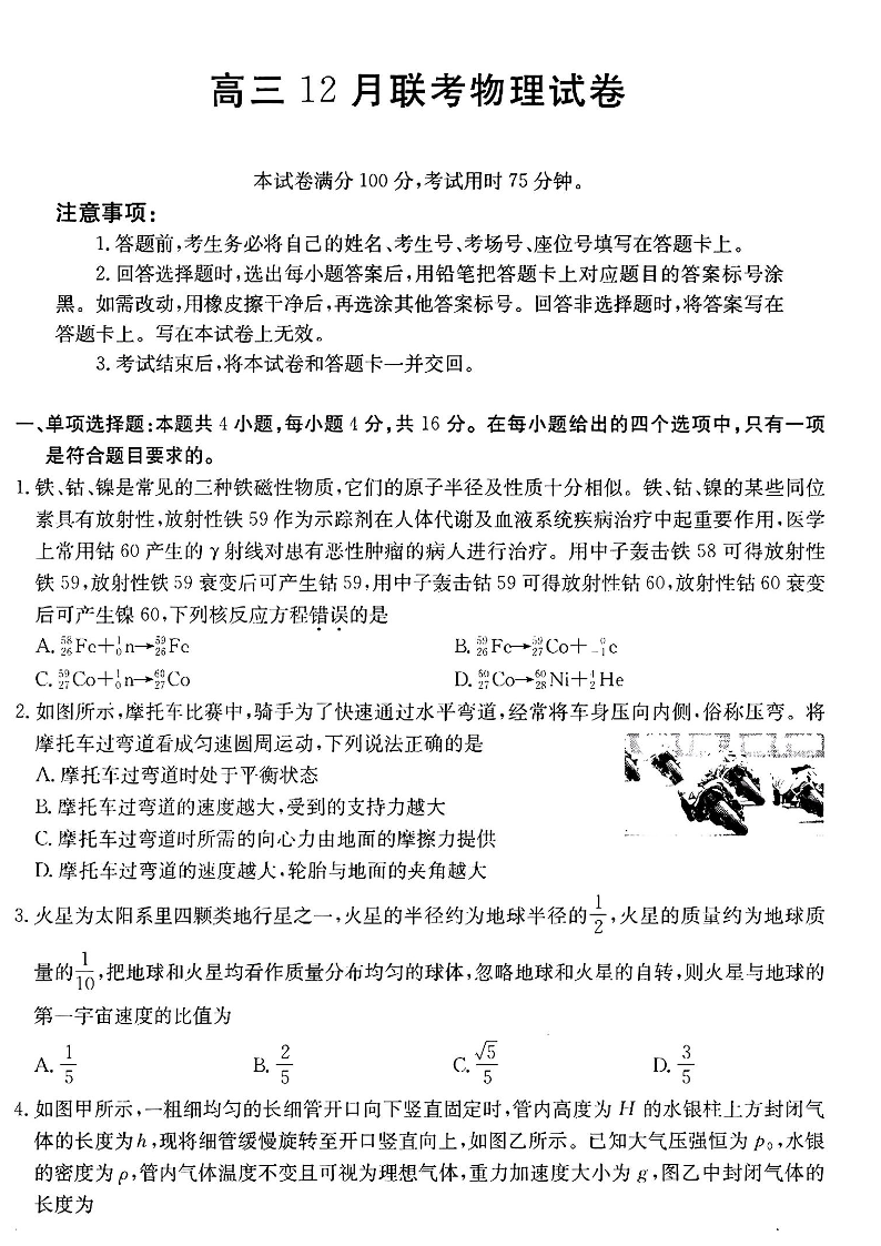 福建、广东部分学校2025届高三12月联考 物理.pdf