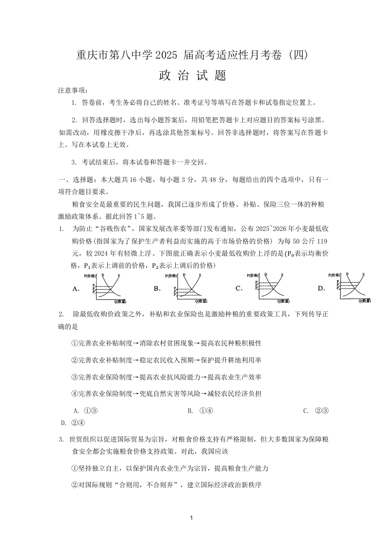 重庆市第八中学2025届高考适应性月考卷 (四)政治.docx