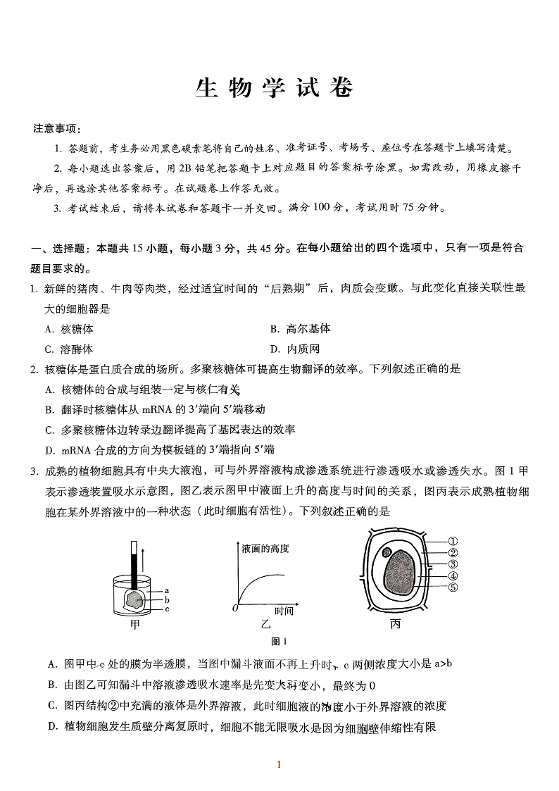 重庆市第八中学2025届高考适应性月考卷 (四)生物.pdf