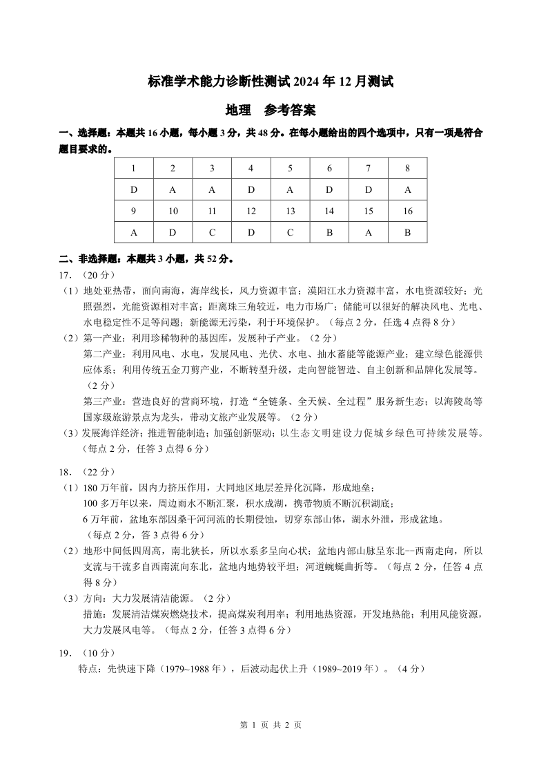 中学生标准学术能力诊断性测试2024-2025学年高三上学期12月月考试题 地理答案.pdf