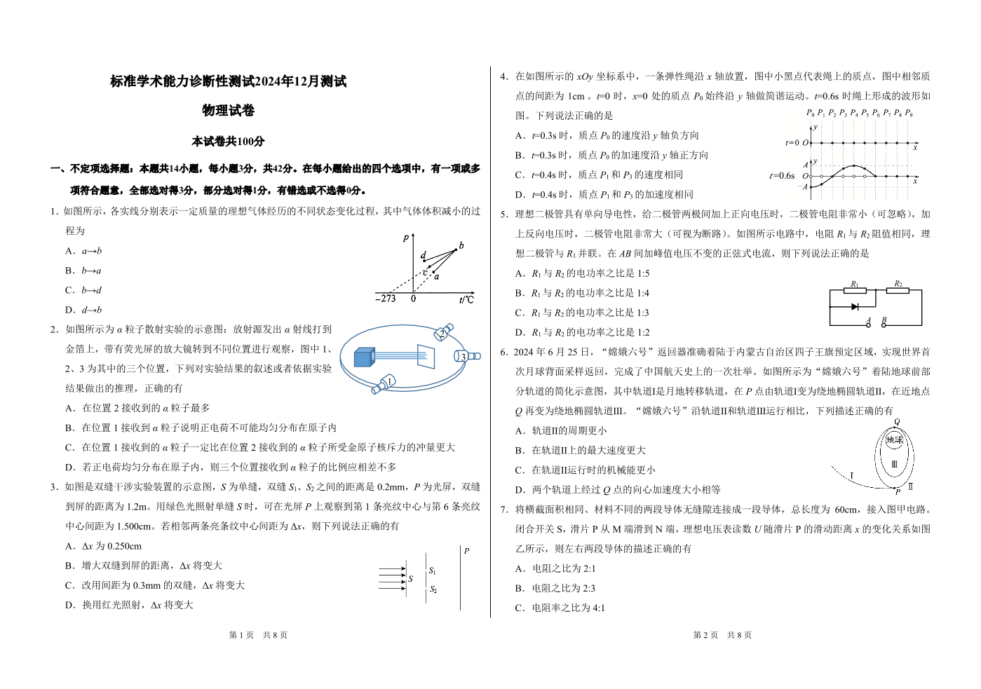 中学生标准学术能力诊断性测试2024-2025学年高三上学期12月月考试题 物理 PDF版含答案.pdf
