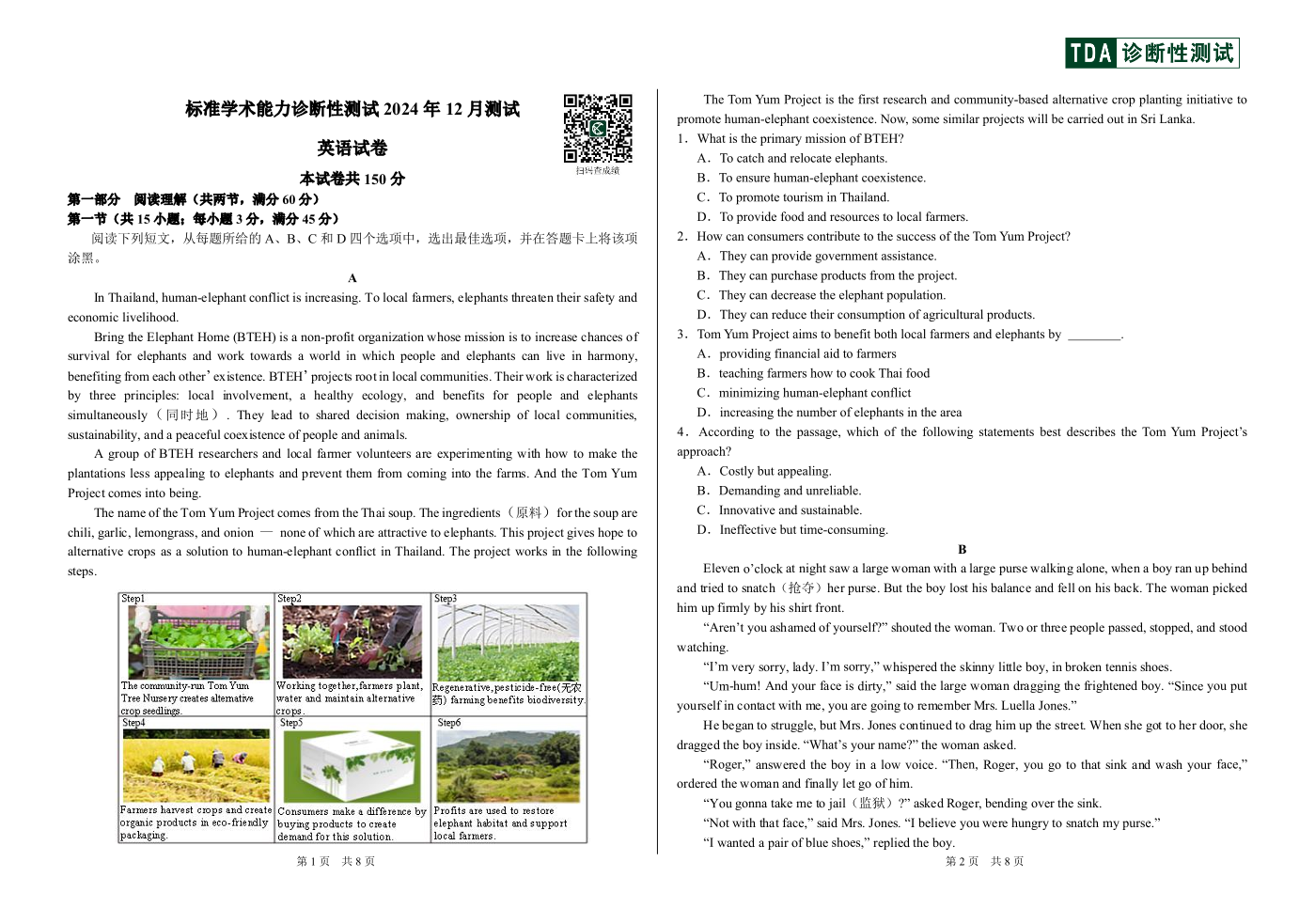 中学生标准学术能力诊断性测试2024-2025学年高三上学期12月月考试题 英语 PDF版含答案.pdf