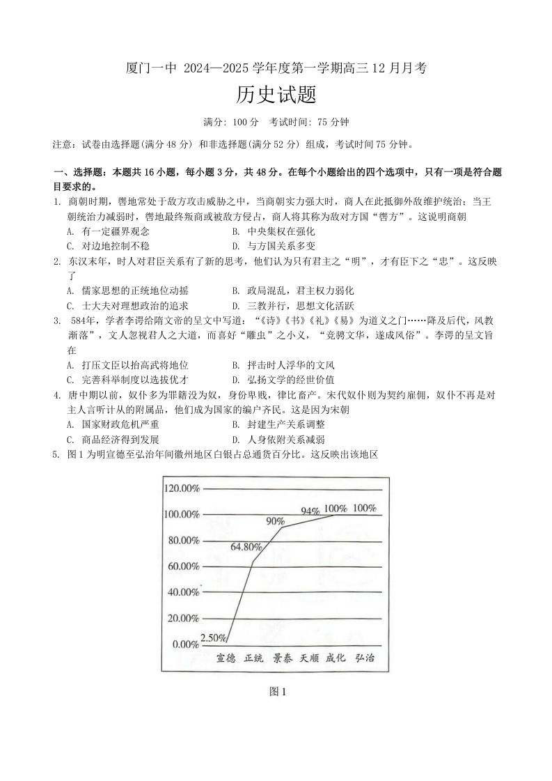 福建省厦门第一中学2024-2025学年高三12月月考历史.docx
