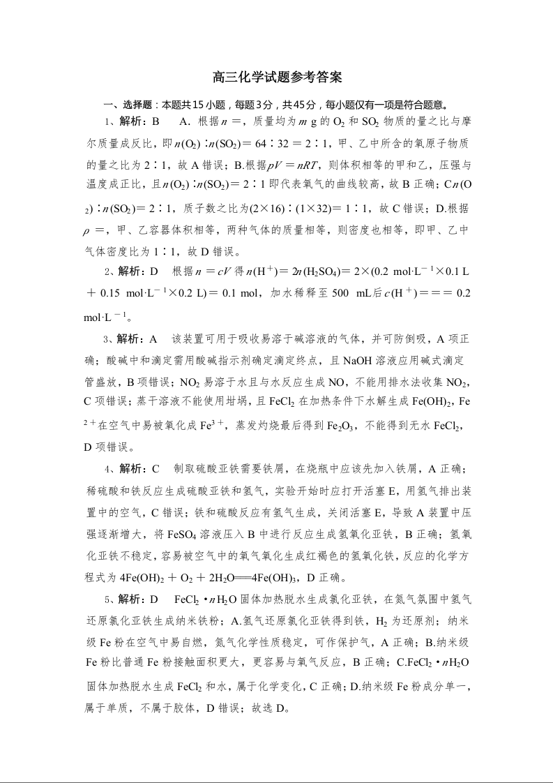 湖北省随州市部分高中联考协作体2024-2025学年高三上学期12月联考化学试题答案.docx