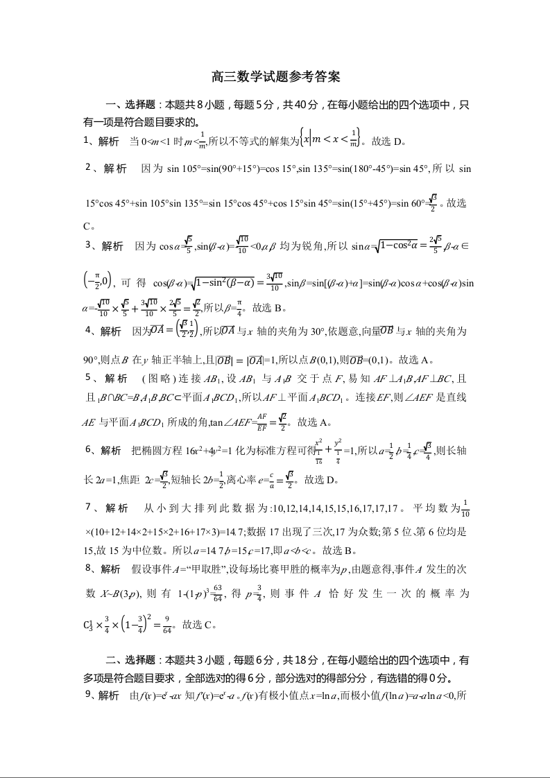 湖北省随州市部分高中联考协作体2024-2025学年高三上学期12月联考数学试题答案.docx