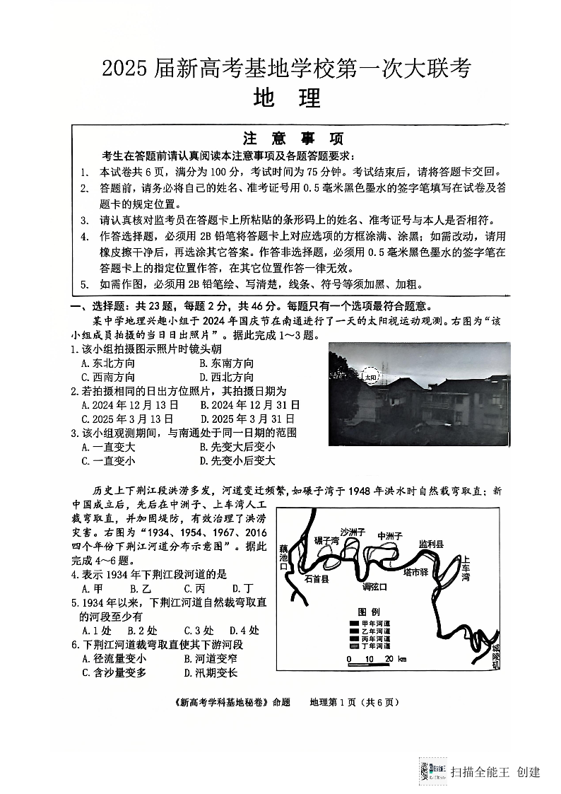 江苏省南通市新高考基地学校2024-2025学年高三上学期第一次大联考地理试题.pdf