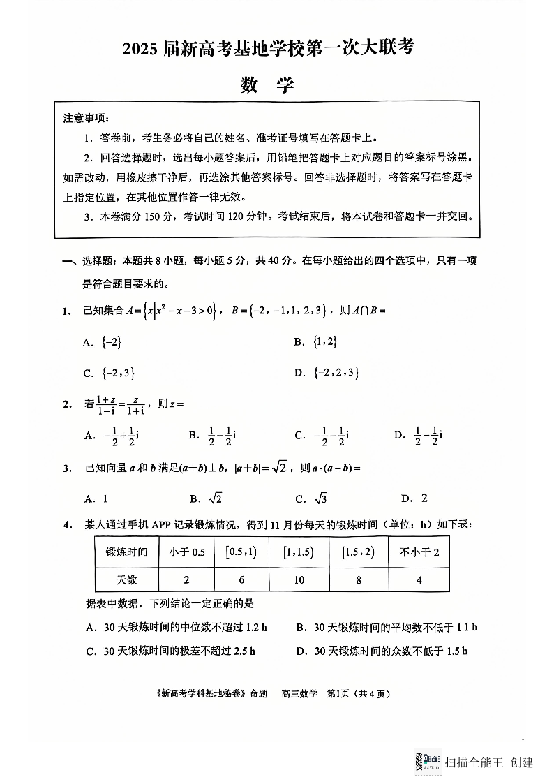 江苏省南通市新高考基地学校2024-2025学年高三上学期第一次大联考数学试题.pdf
