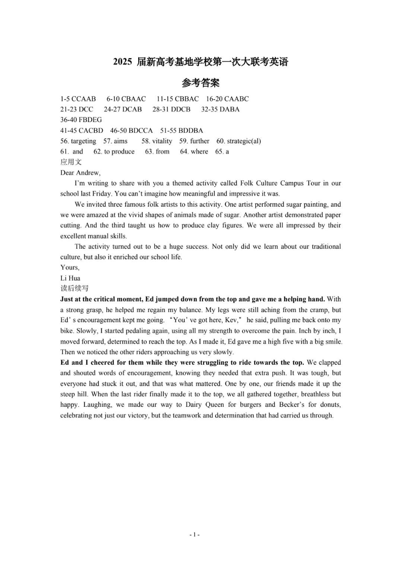 江苏省南通市新高考基地学校2024-2025学年高三上学期第一次大联考英语答案.pdf
